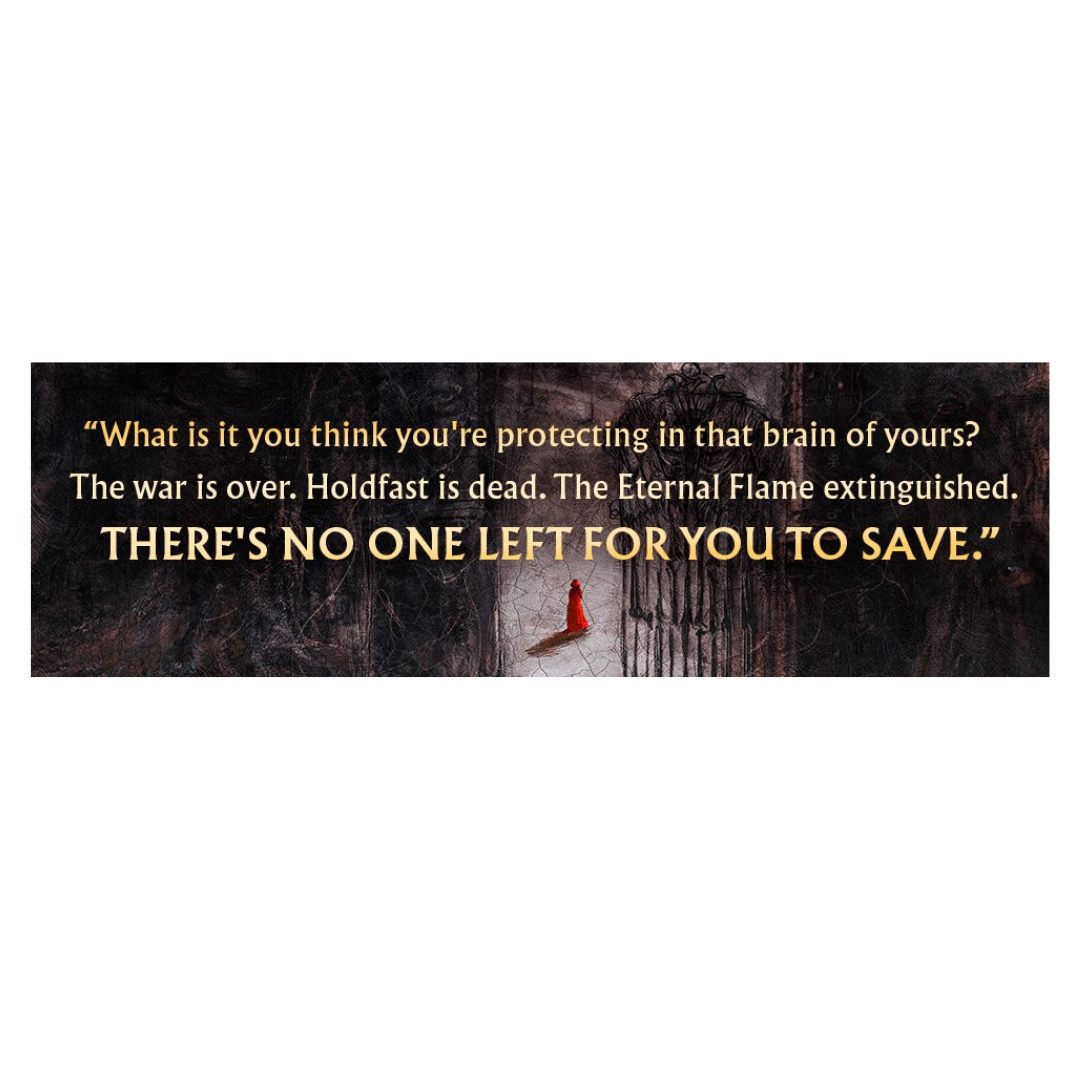 “What is it you think you’re protecting in that brain of yours? The war is over. Holdfast is dead. The Eternal Flame extinguished. There’s no one left for you to save.”