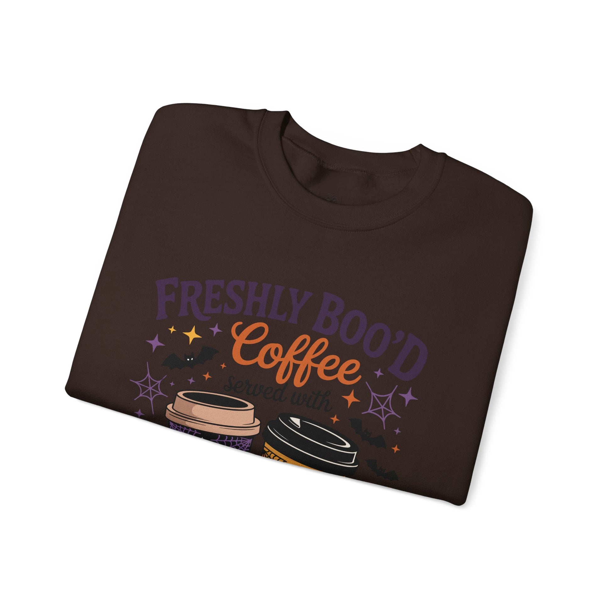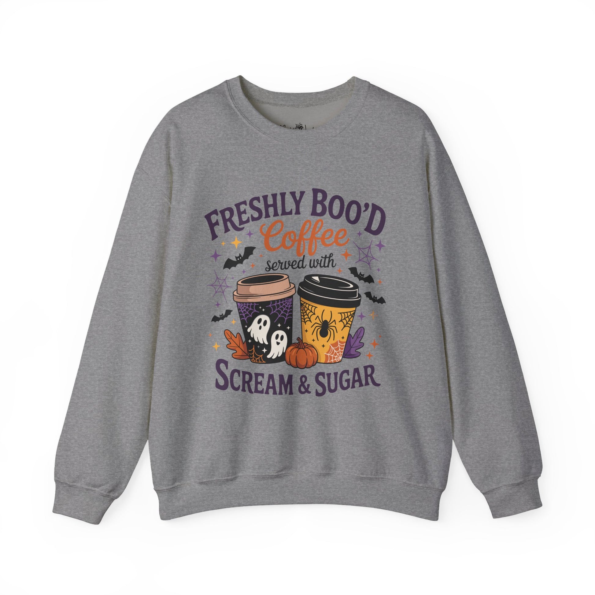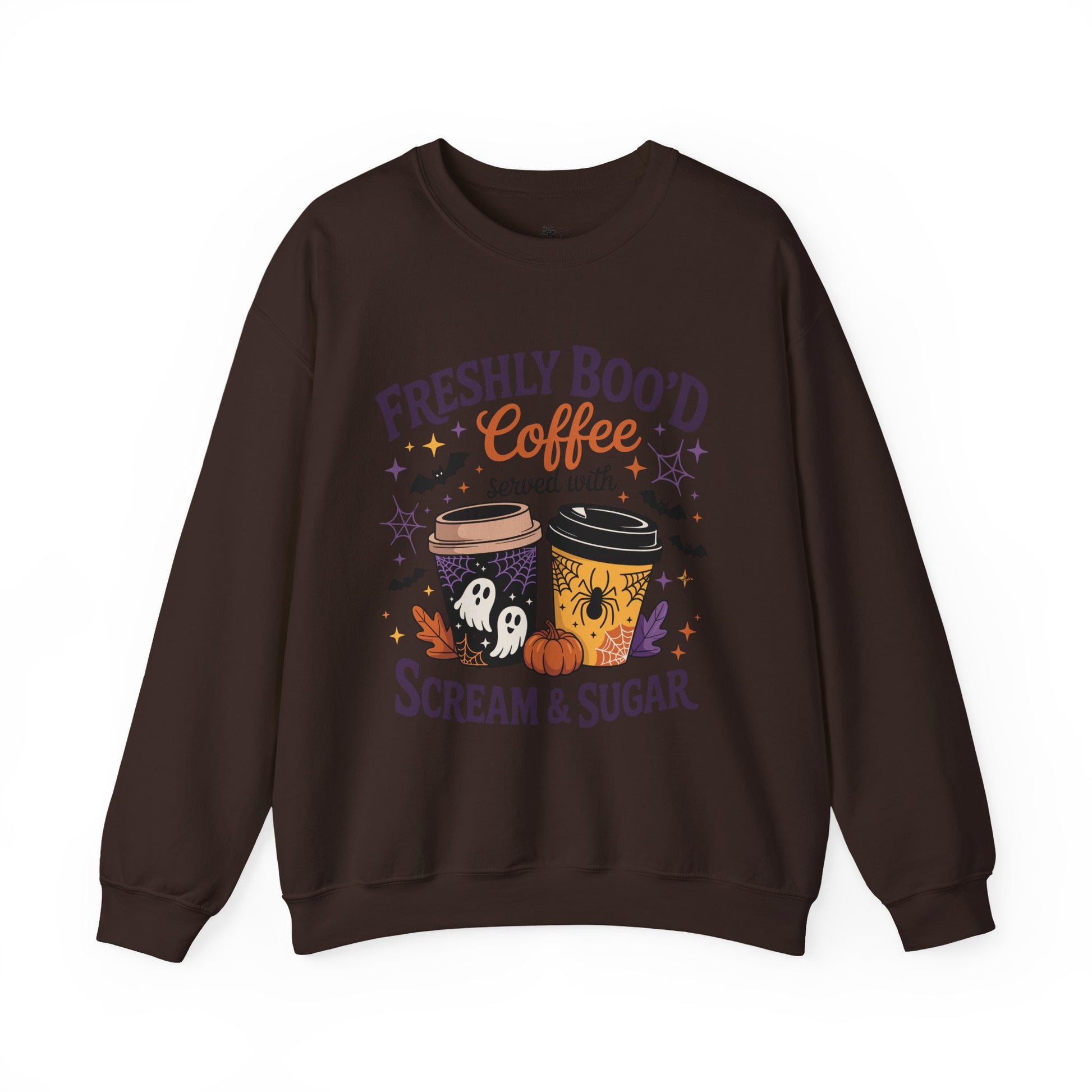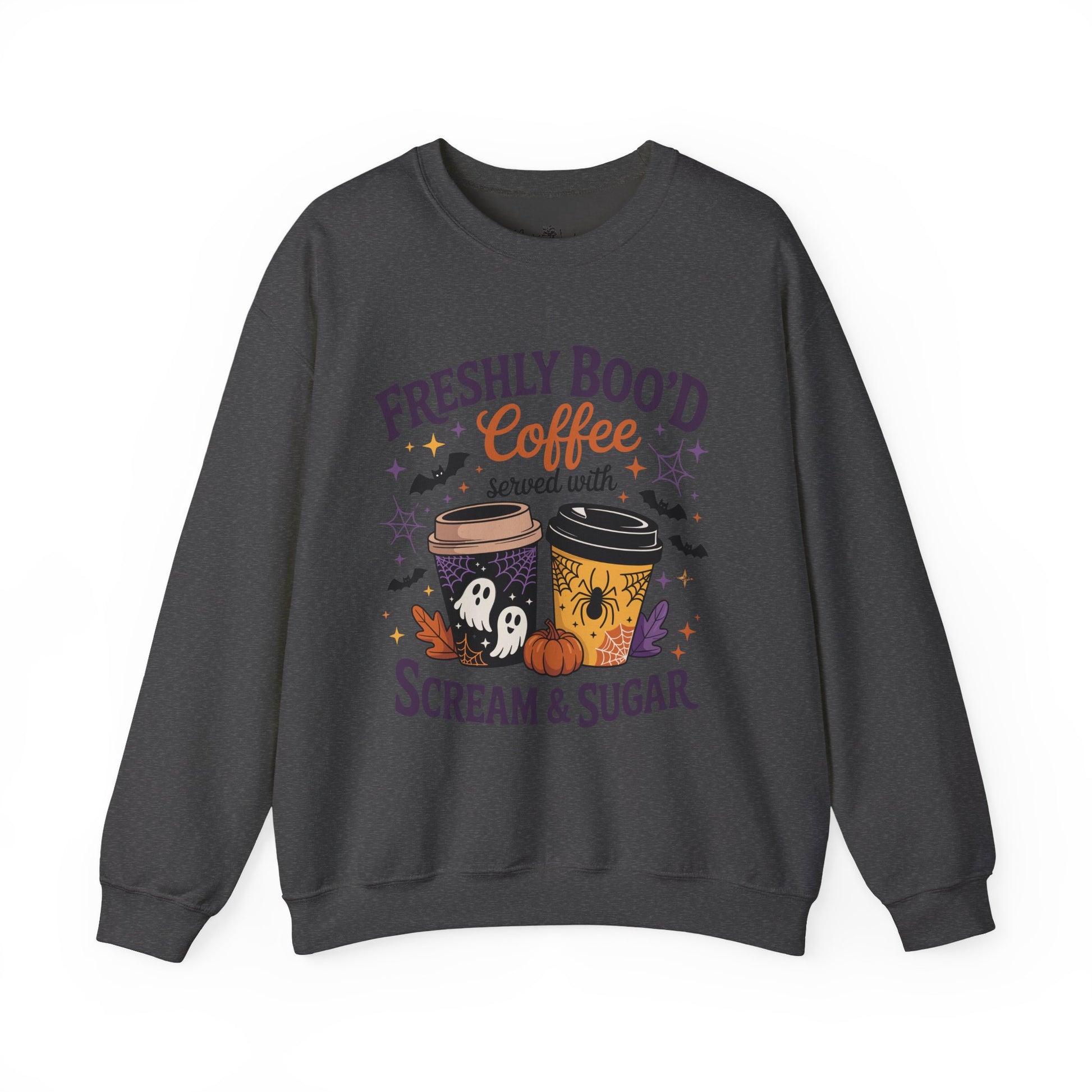 Halloween Coffee Sweatshirt, Cozy Fall Top, Spooky Gift, Unisex Crewneck, Autumn Fashion