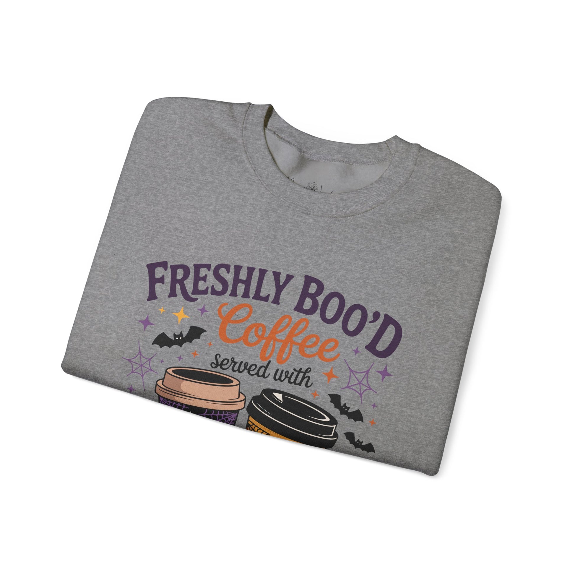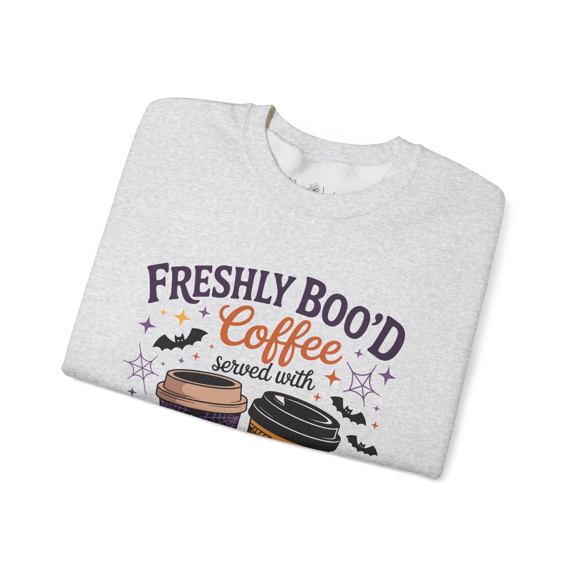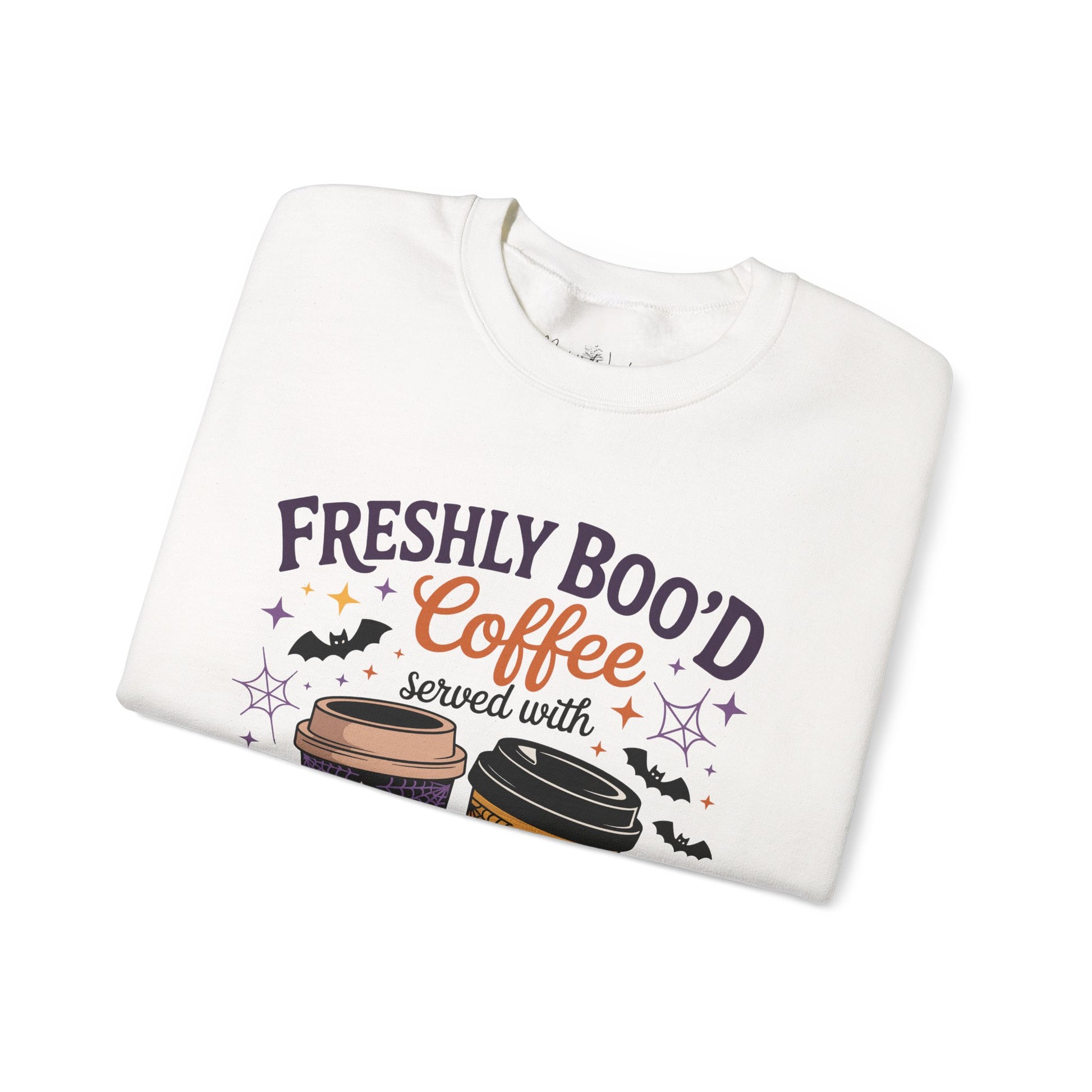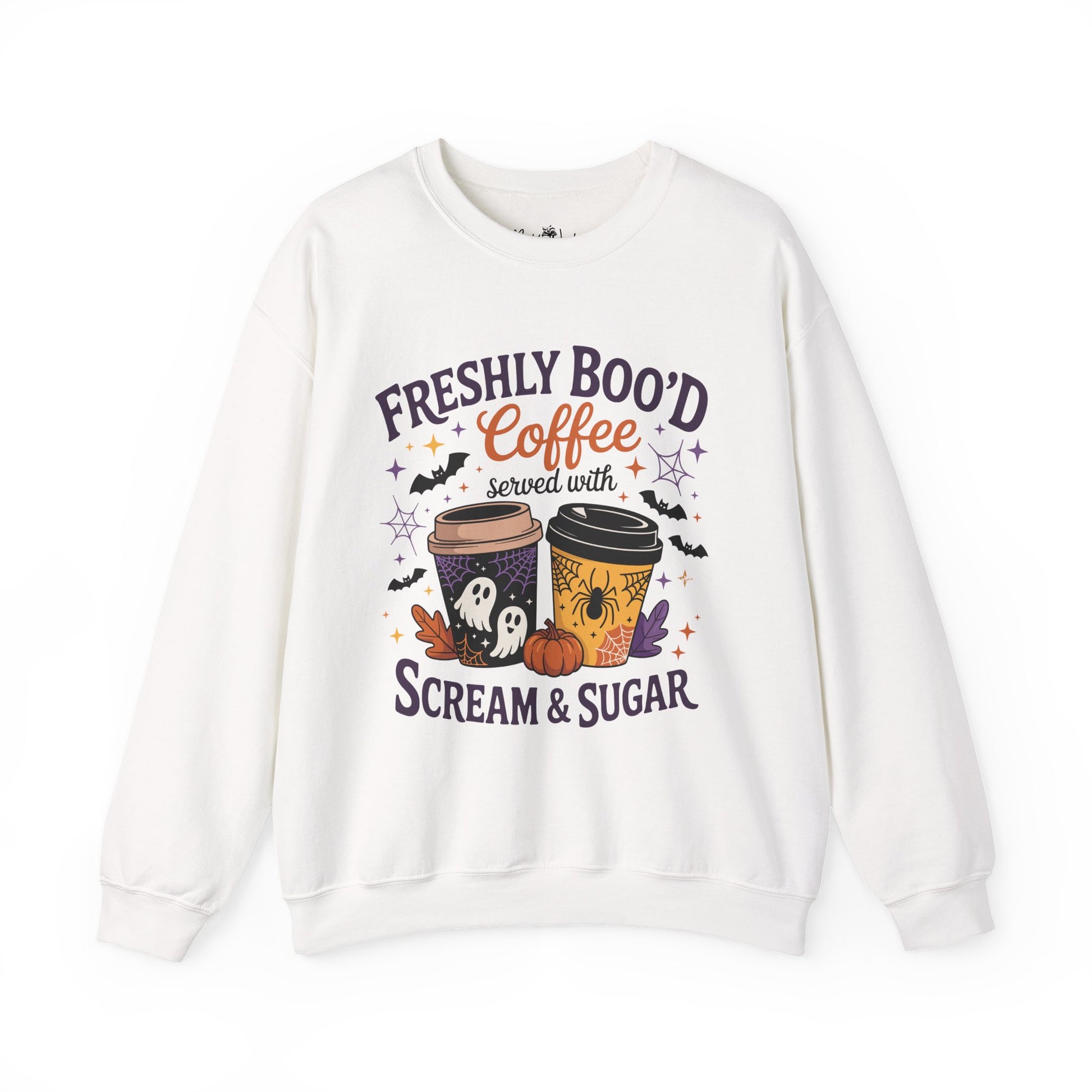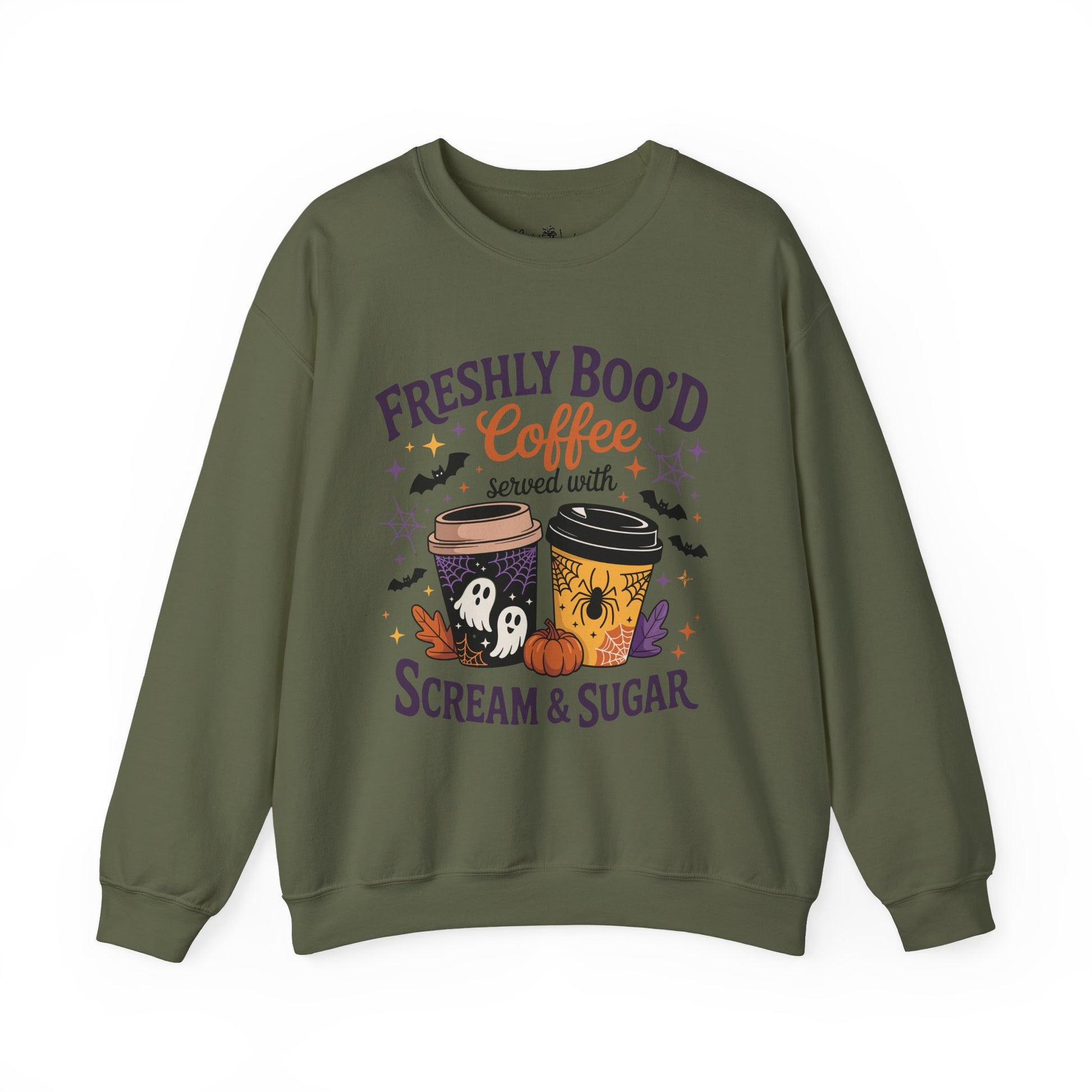 Halloween Coffee Sweatshirt, Cozy Fall Top, Spooky Gift, Unisex Crewneck, Autumn Fashion